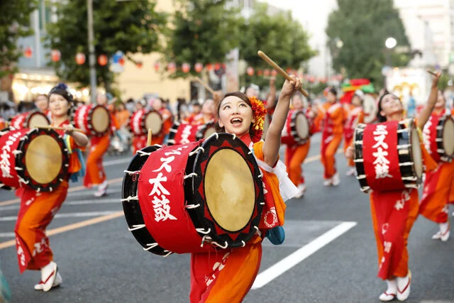 In Kosaka town where the school is, the townspeople all come together on the main street for festivities. You can join in the traditional dance!
